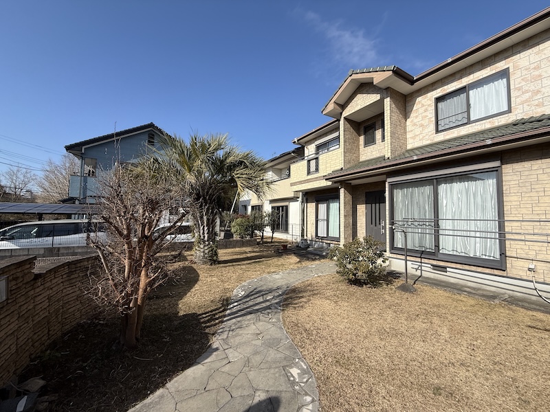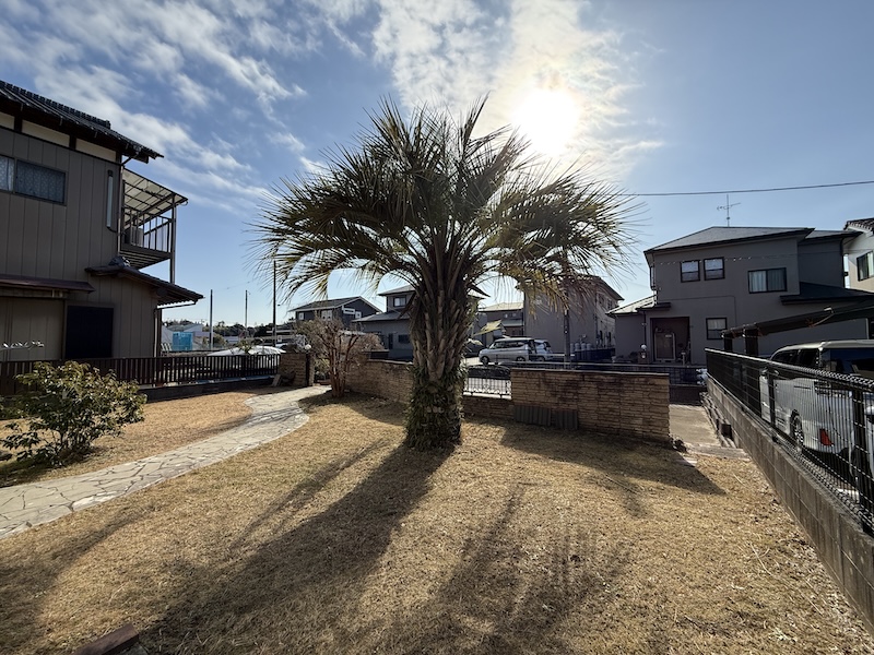 ・芝生とヤシの木の南国風のお庭になっています